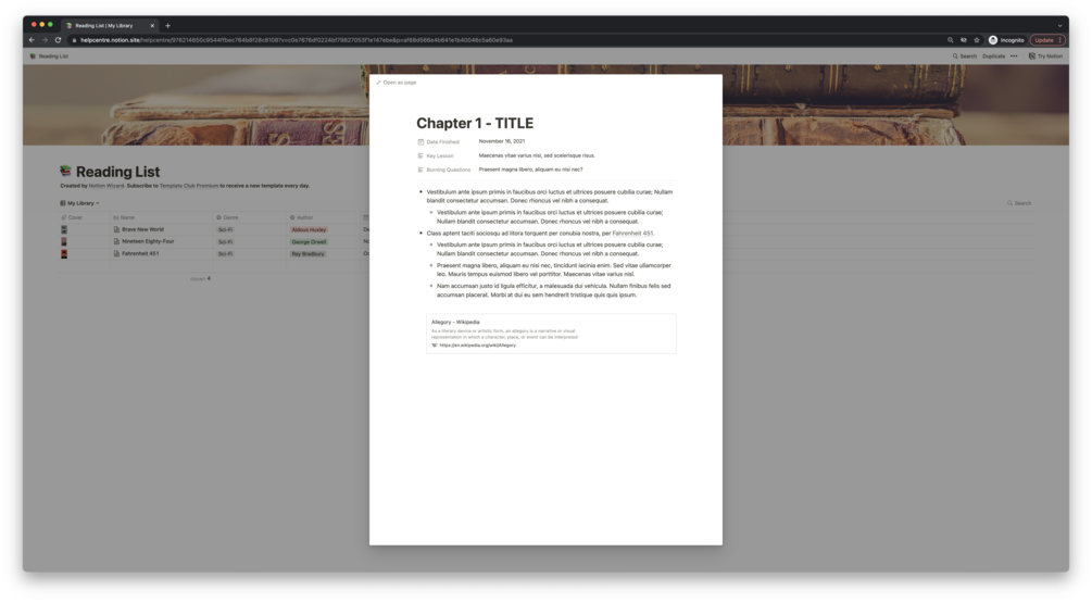 Notion Reading List Template